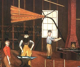 readily picture in our minds such as a backsmith's shop where the blacksmith
