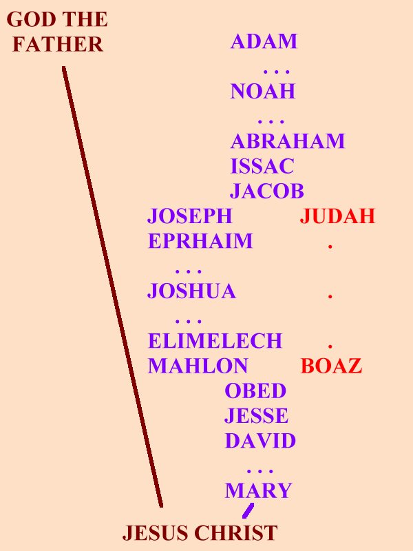"And one of the elders saith unto me, Weep not: behole the Lion of the tribe of Juda, the Root of David, hath prevailed to open the book, and to loose the seven seals thereof." ~ Revelation 5:5If Jesus is the Lion of the tribe of Judah, does that not preclude that he cannot be descended from Joseph? No. While Jesus was of the bloodline of Judah by the surrogate fatherhood of Boaz and thus accepted by the Jews as a kinsman Jew, legally he was the son of the dead Mahlon and of the house of Naomi and Elimelech, Ephraimites. Yet Judah desired to be the premire tribe of Jacob. And according to the perception and record kept by the Jews, since the day when David so chose Judah over Israel (see II Samuel 19 particularly verses 41-43) and since the captivity of the 10 tribes of Israel, being taken and scattered into the nations of the world, the Messiah, descendant of David, was considered of the tribe of Judah after his blood line from Boaz and Judah. That is, the genealogy was NOT kept according to the birthright, though by that birthright of the covenant did the blessings of heaven prevail from Jacob to Joseph (D&C 27:10) and thence down through Ephraim unto Christ by the surogate raising up a son unto the dead house of Elimelech; yet as skewed by the Jews, 'Judah prevailed' from their perspective (1 Chronicles 5:1-2).
