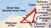 Gen. 16:7 (7, 14) b Gen. 10:19; Gen. 26:6 BD Gerar