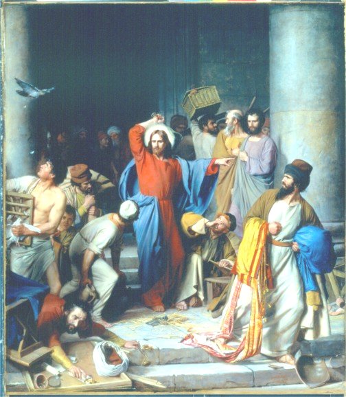 16 And said unto them that sold doves, Take these things hence; make not my Father's house an house of merchandise.   17 And his disciples remembered that it was written, The azeal of thine house hath beaten me up. |