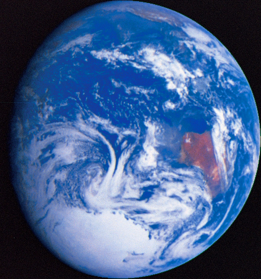 from the perspective of outerspace. The blue marble like plant of life.