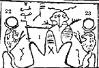 Fig. 5. Is called in Egyptian Enish-go-on-dosh; this is one of the governing planets also, and is said by the Egyptians to be the Sun, and to borrow its light from Kolob through the medium of Kae-e-vanrash, which is the grand Key, or, in other words, the governing power, which governs fifteen other fixed planets or stars, as also Floeese or the Moon, the Earth and the Sun in their annual revolutions. This planet receives its power through the medium of Kli-flos-is-es, or Hah-ko-kau-beam, the stars represented by numbers 22 and 23, receiving light from the revolutions of Kolob.