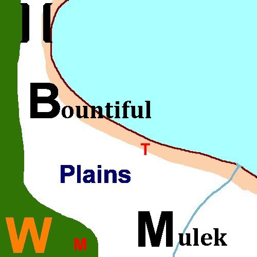 the eastern seashore from the city of Mulek. Also shown is that to the west