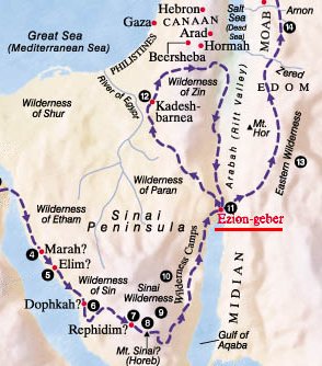 which Moses had Israel return to their encampment at Ezion-Geber before