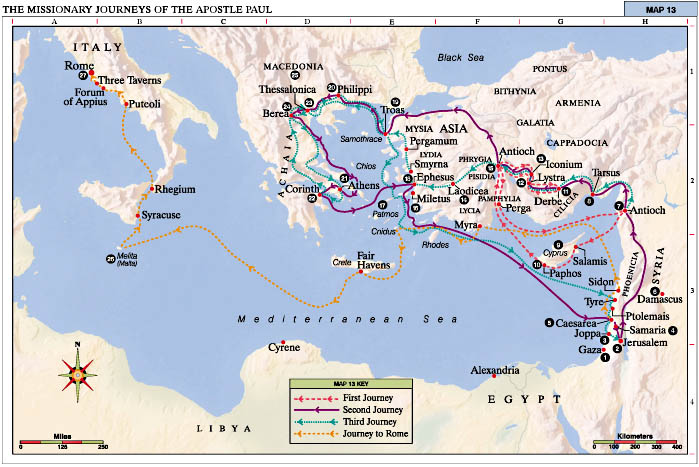 BIBLE MAPS THE MISSIONARY JOURNEYS OF THE APOSTLE PAUL