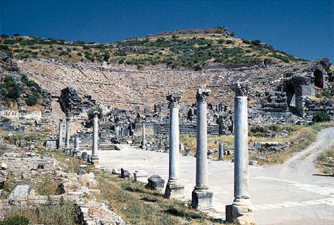 The ruins of the Greek theater at Ephesus, where the Apostle Paul preached. During New Testament times, Ephesus was famous throughout the known world for its magnificent temple built in honor of the pagan Roman goddess Diana. Now in ruins, Ephesus was once the capital of the Roman province of Asia and a great center of commerce. The silversmiths of the city developed a flourishing trade selling images of Diana.